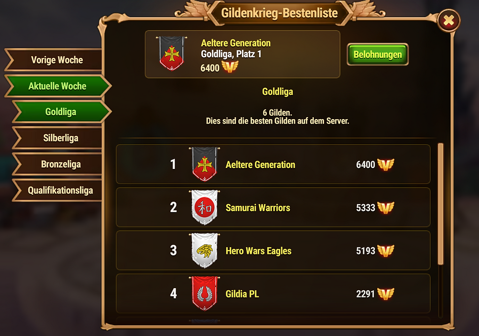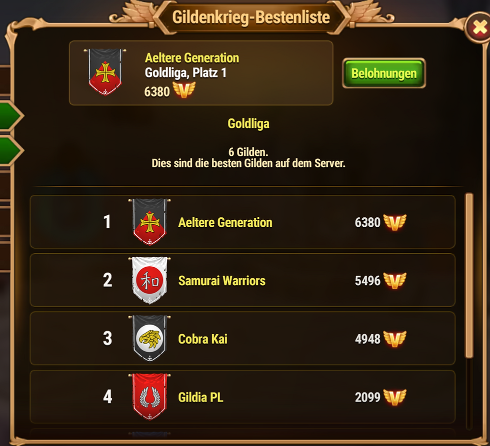 Regelmäßige Teilnahme am Gildenkrieg (zumindest 4x Woche, aber besser 5x :-) ) - Weltkrieg - Gildenraid, Burgevent (Gebiet der Eroberung)